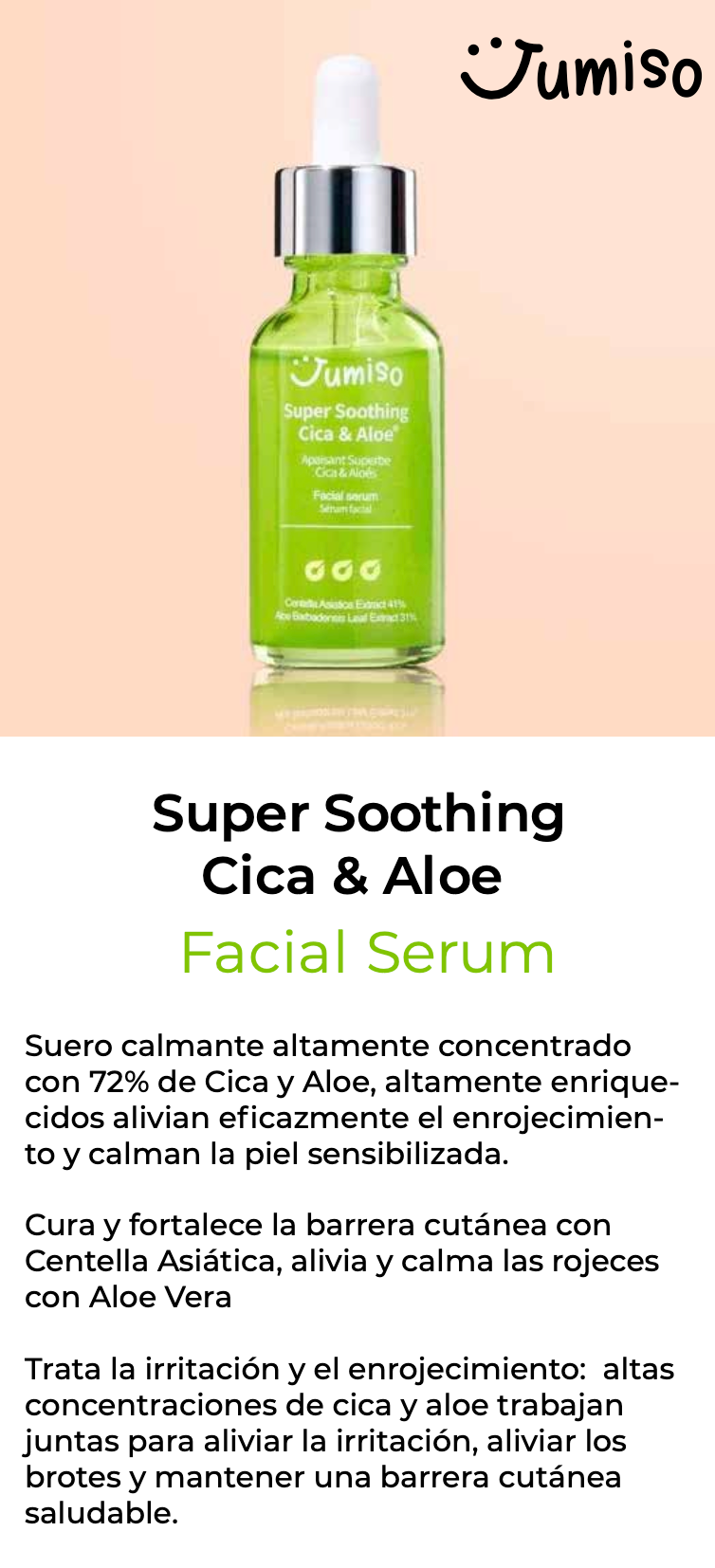 Si tu piel se enrojece y está seca sin mejora (puede ser un caso de deshidratación), es hora de conocer el suero facial Jumiso Super Soothing Cica Aloe Facial Serum.